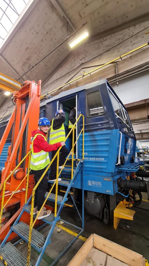 Na vrátnici jsme dostali slušivé modré přilby a vesty a usadili se v učebně, kde nás seznámili s 3D modelováním vlaků a různých doplňků, které zde připravují, vyrábějí a přidávají do lokomotiv. Poté jsme se rozdělili do dvou týmů. Každý tým dostal přiděleného milého pána, který nás měl na starost a vše nám během exkurze postupně vysvětloval. Následovala prohlídka výrobních hal, kde se vyrábějí vlaky nové a zároveň opravují a modernizují ty staré. Za odměnu se pak mohla celá třída zvážit na váze, kde se váží vlaky. Na závěr exkurze jsme si udělali společnou fotku u historické mašinky jménem „Hurvínek“.
