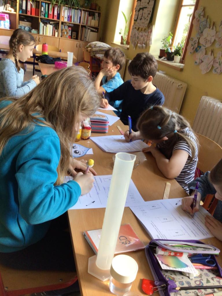 Výsledky pokusů jsme zapisovali do pracovních listů. Nakonec jsme si ještě namalovali koloběh vody a shrnuli jsme si, co všechno jsme se o vodě dozvěděli.