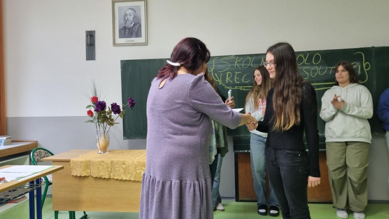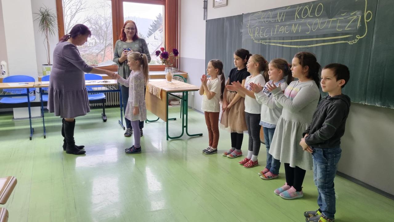 Úspěšní žáci obdrželi diplomy a sladkosti, nicméně zkrátka nepřišli ani ostatní účastníci recitace, kteří dostali také sladkou odměnu.