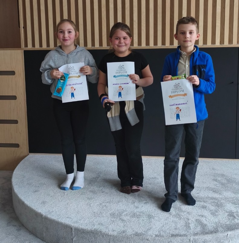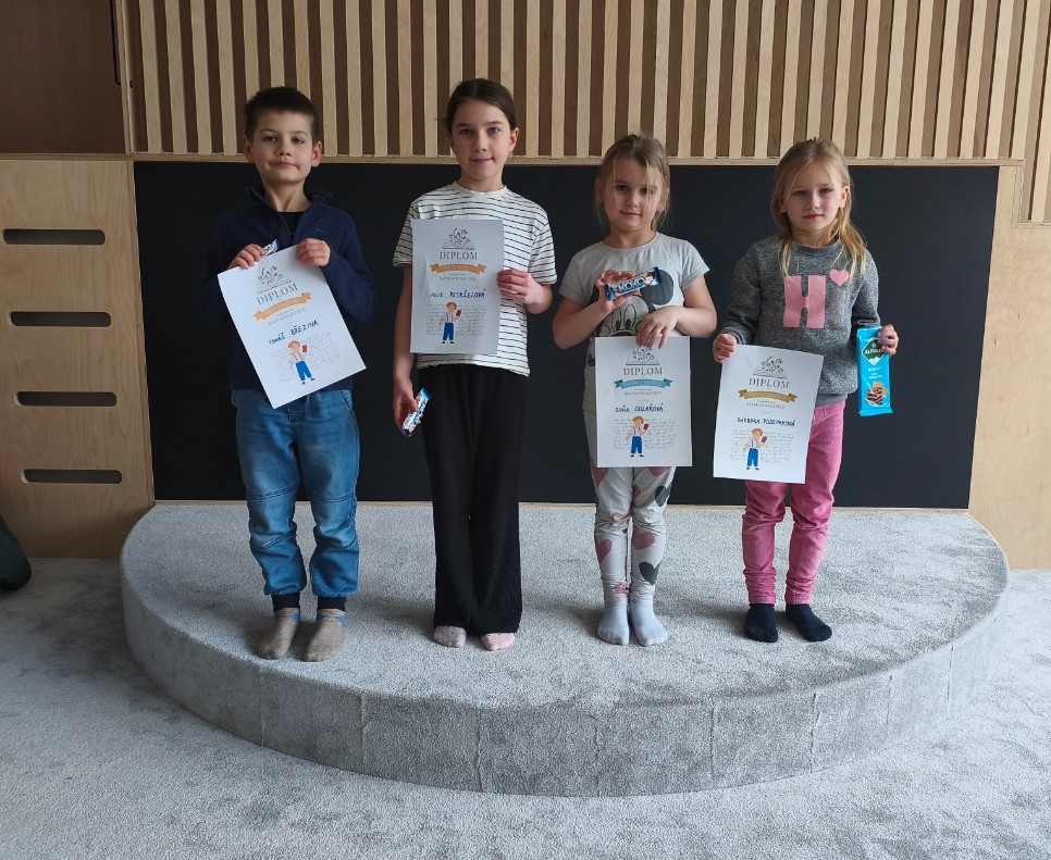 Všichni soutěžící si zaslouží kromě diplomů a sladkostí poděkování a pochvalu za snahu, odvahu i velké nadšení, s kterým své básně přednášeli. Pavlovi Trojákovi přejeme hodně štěstí při recitaci v okresním kole.